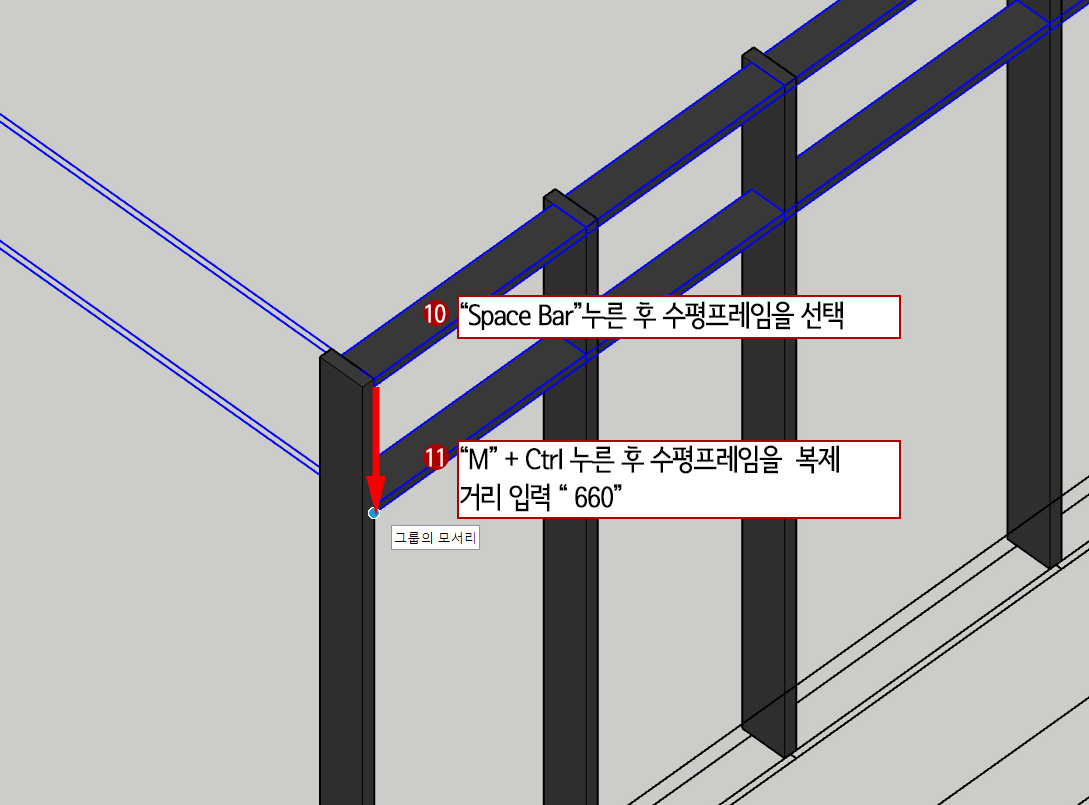 10. Space Bar(선택)를 누르고 수평프레임 그룹을 선택합니다.