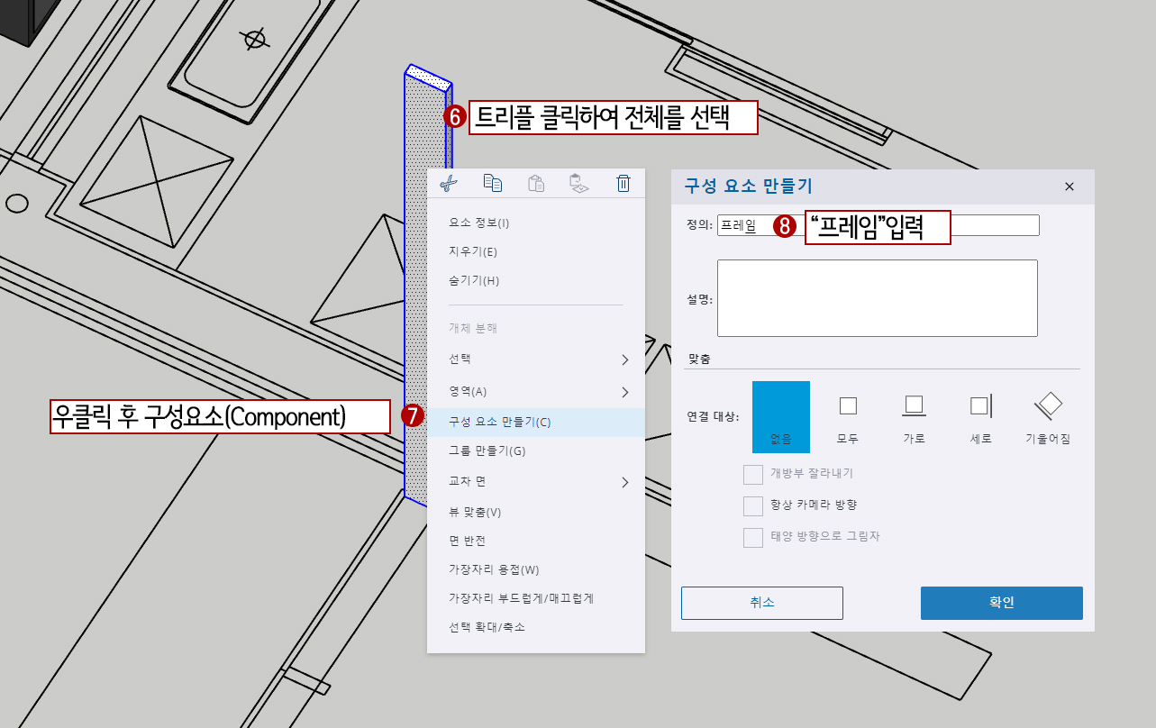 7. 마우스 우클릭 후 쿼드 메뉴에서 구성 요소 만들기(Make Component)를 선택합니다.