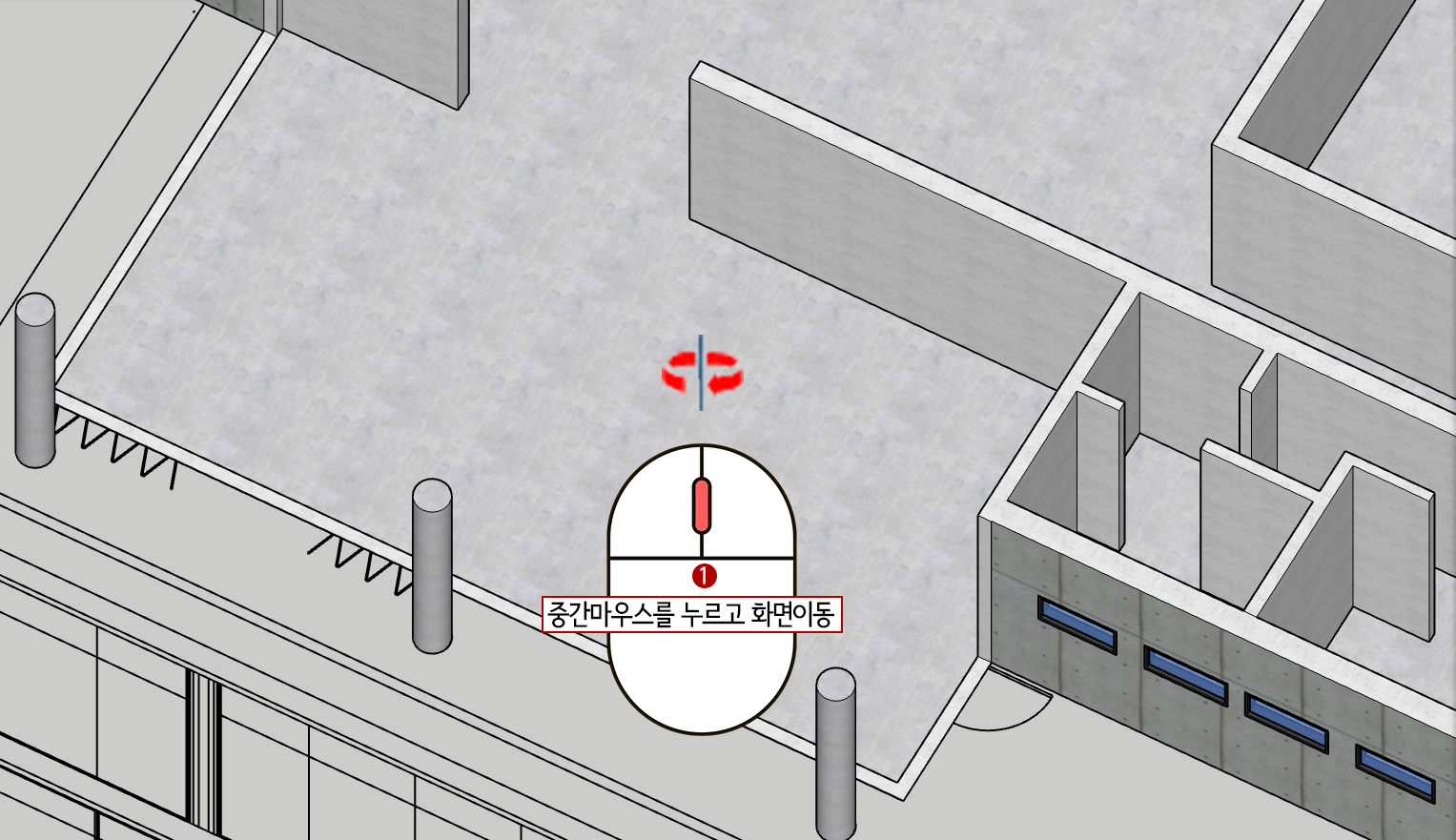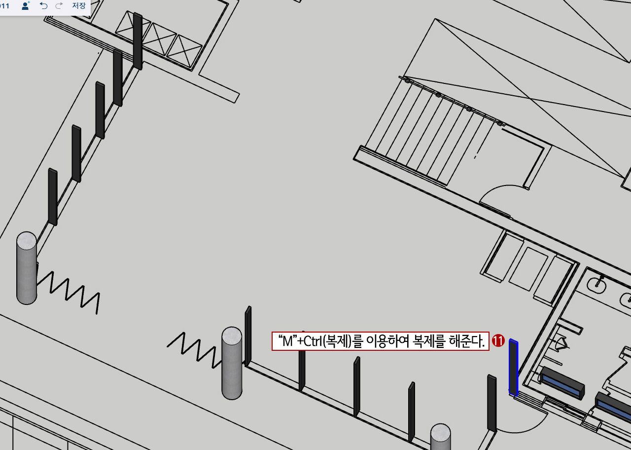 목차앞선 강좌와 연속해서 외부와 내부를 연결시켜 주는 폴딩도어를 만들어 보겠습니다.회전(Q)과 복사(M + ctrl) 기능을 많이 활용할 것입니다. 지난 챕터 06까지 진행했던 파일을 첩부합니다. 1.