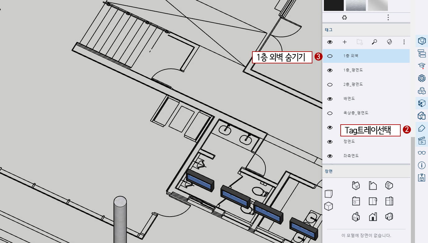 3. 1층 외벽 태그를 숨겨줍니다.