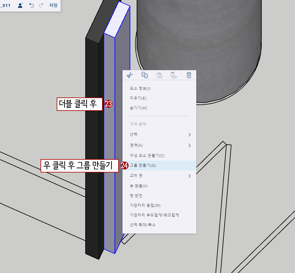 24. 마우스 우클릭한 후 쿼드에서 그룹 만들기를 선택하여 그룹을 만들어 줍니다.