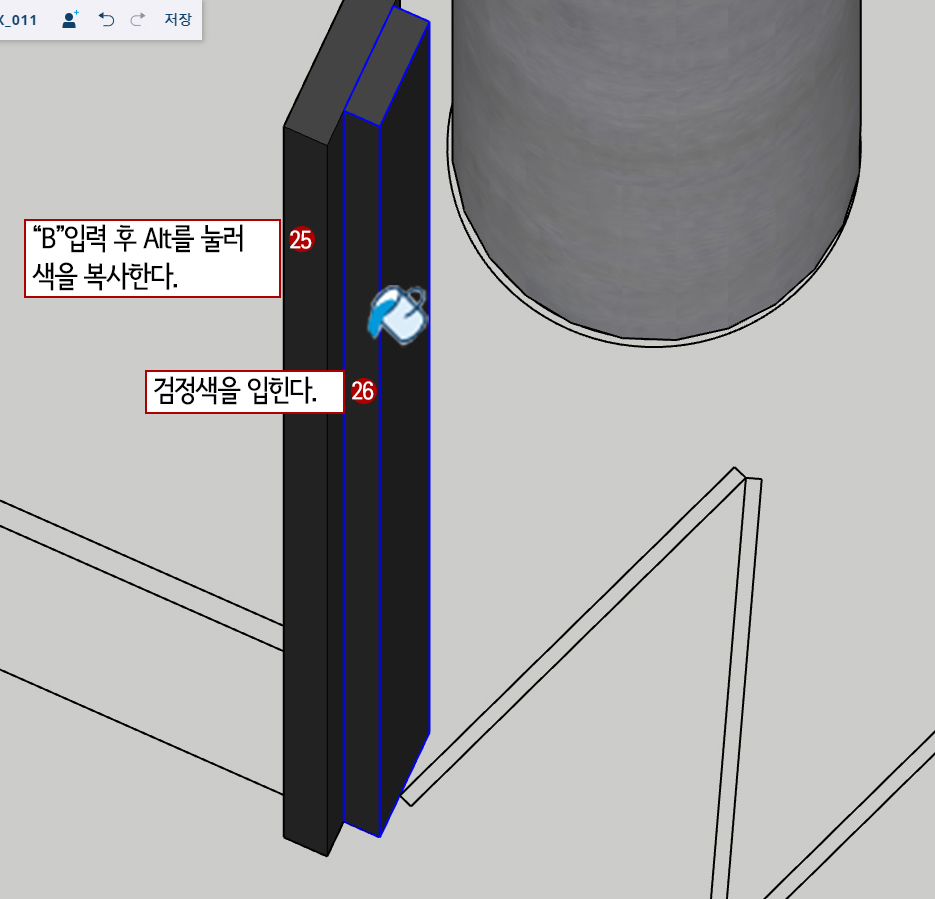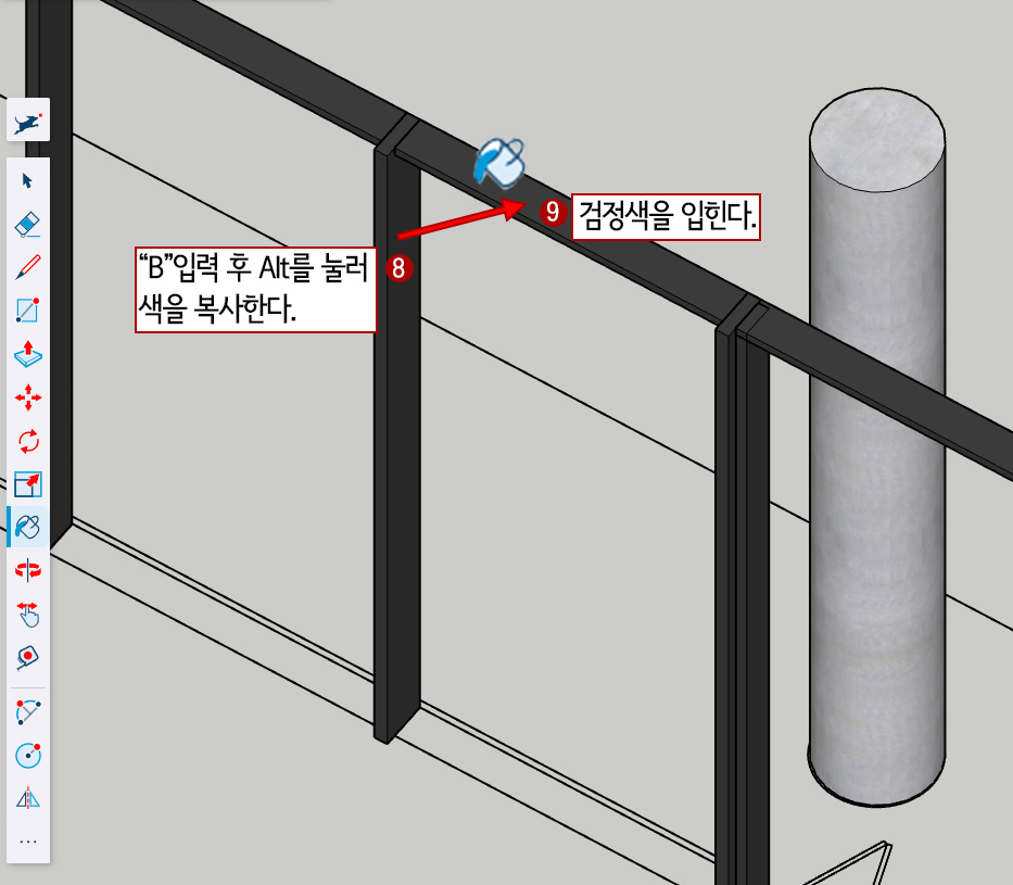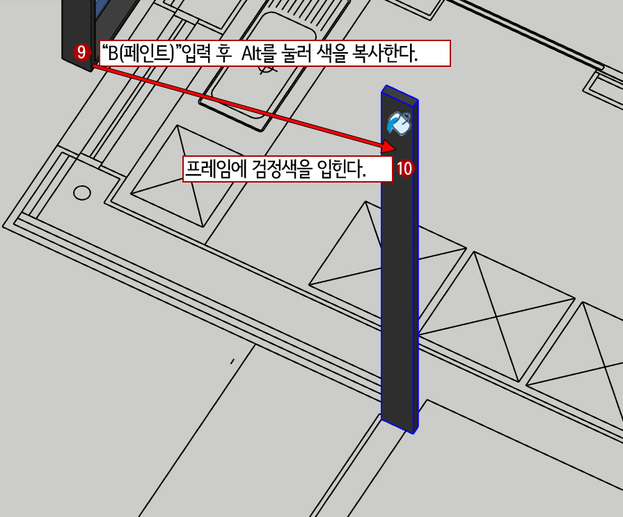 9. B(페인트)를 눌러주고 Alt를 누른 상태에서 창틀의 검은색을 클릭하면 검은색을 복사합니다.