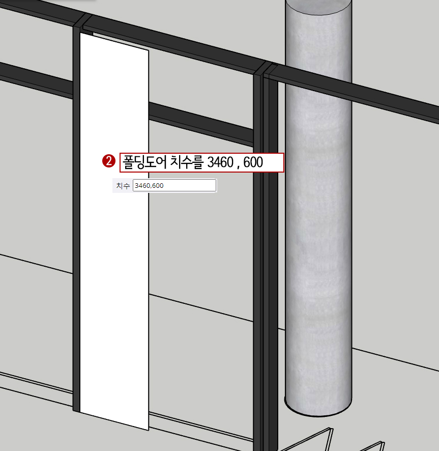 2. 키보드로 "3460,600" 입력합니다. 폴딩도어 프레임크기를 조정하기 위해서입니다.