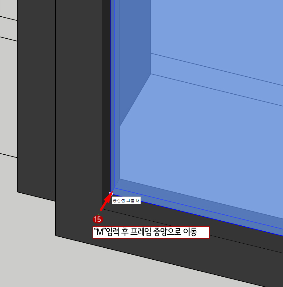 15. Space Bar(선택)를 누른 후 유리창을 선택 후 M(이동)을 누른 후 이동하여 줍니다.