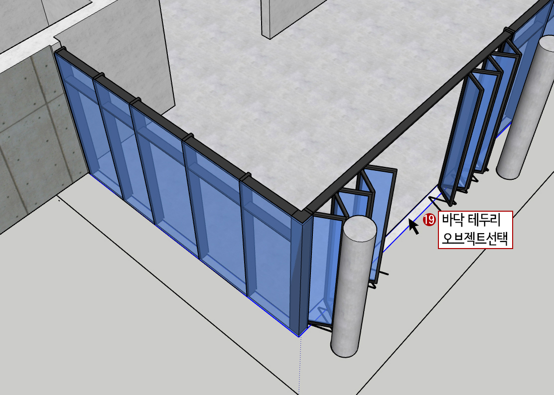 19. Space Bar(선택) 누른 후 바닥 테두리 물체를 선택합니다.