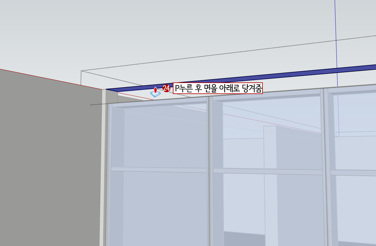 24. P(푸시 풀)을 누른 후 보이는 면을 선택 후