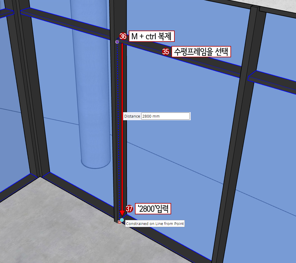 37. 아래로 당겨 복제합니다. 키보드로 '2800'입력합니다.(복사 이동 거리: 2,800mm)