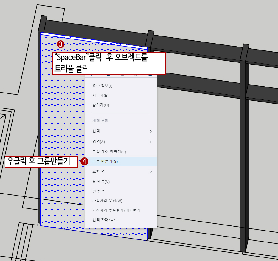 4. 마우스 우클릭 후 쿼드메뉴에서 그룹 만들기를 해줍니다.