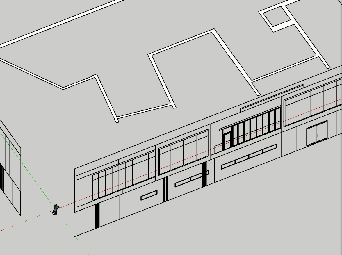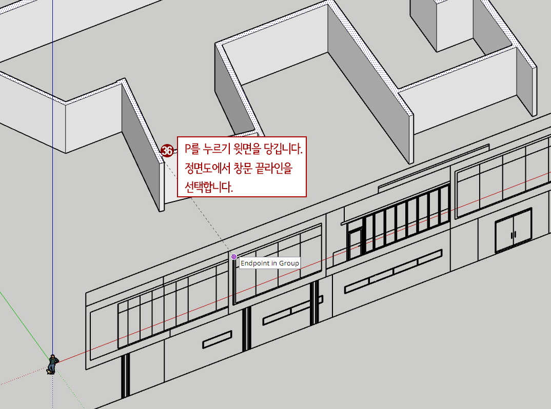 ※ 1) 감성카페, 스케치업으로 디자인하기 03(1층 벽체 만들기)에서 벽체선 만드는 것을 참조하세요.