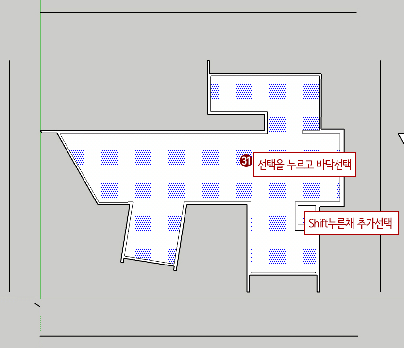 31. SpaceBar(선택)을 누르고 다시 내부바닥 부분 두 군데를 선택합니다.