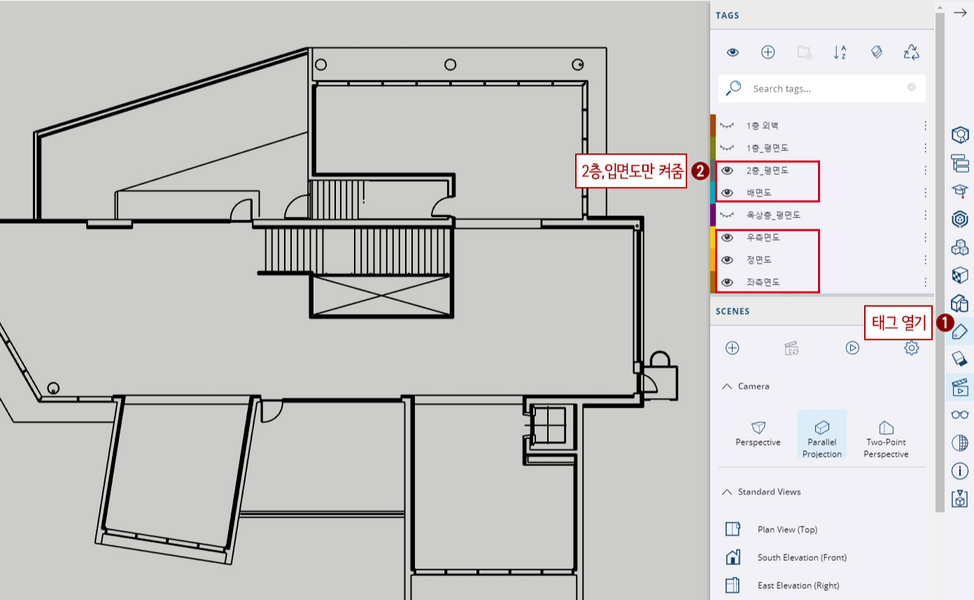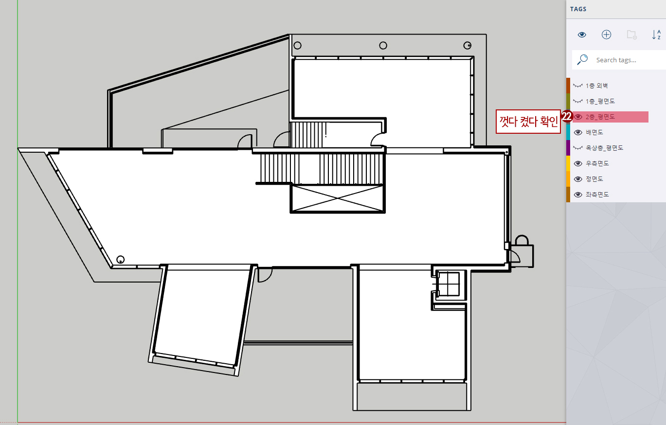 28. 화면을 줌 하고 2층_평면도 태그를 잠시 꺼줍니다.