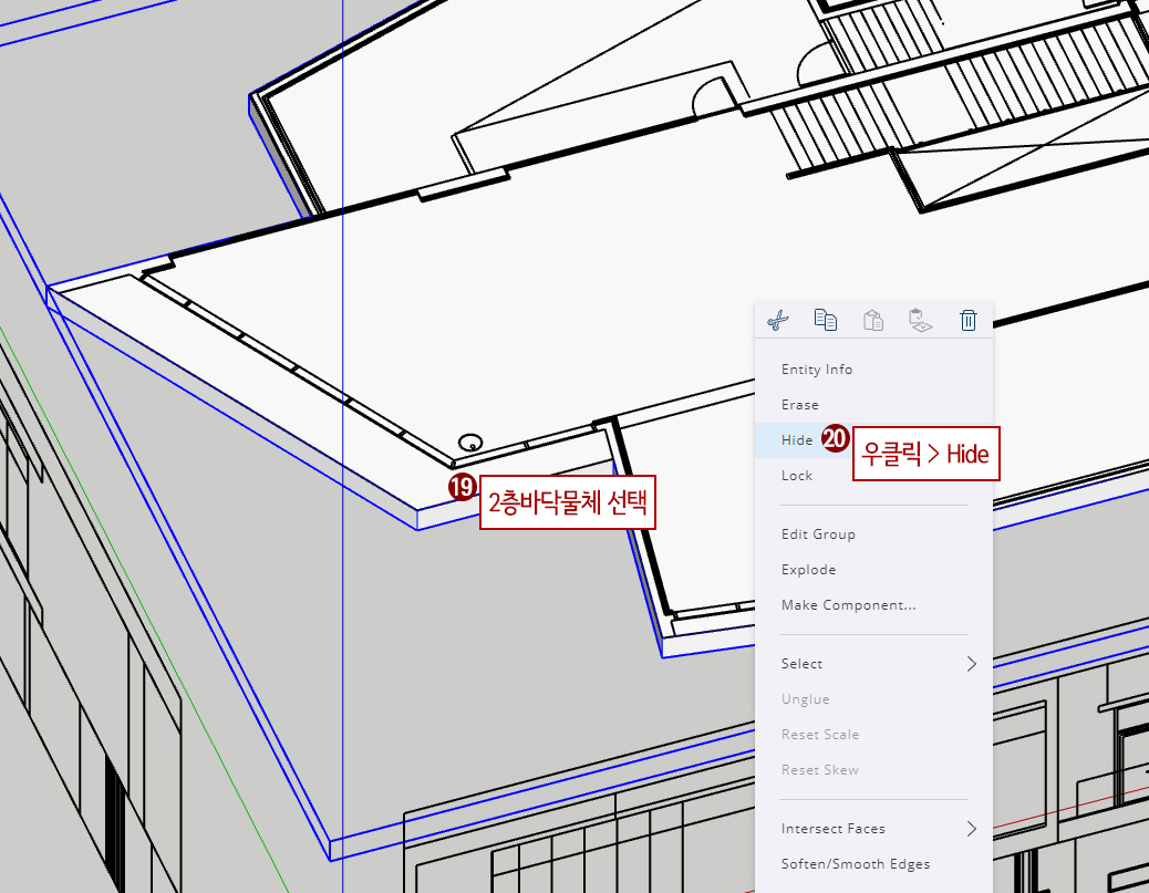 19. 그룹이 된 2층바닥물체는 SpaceBar를 눌러 선택 후에