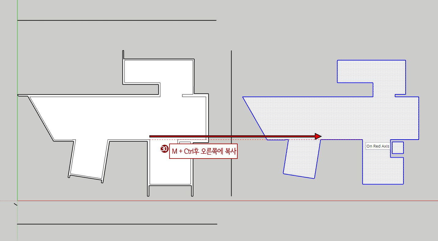30. M(이동)을 누르고 Ctrl키를 한번 눌러준 다음 선택한 바닥 부분을 오른쪽 여백 적당한 곳에 복사하여 줍니다.