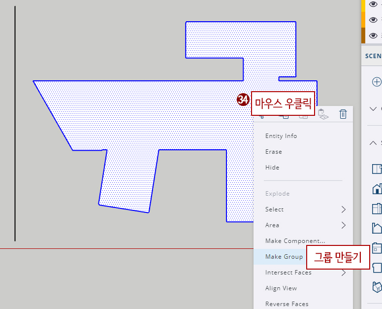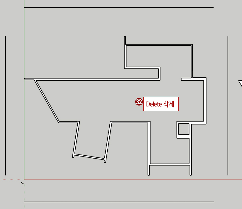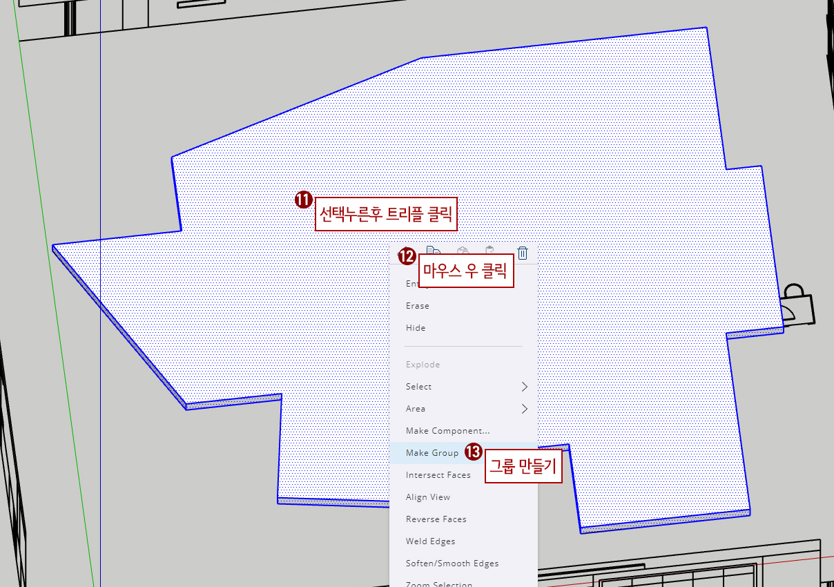 ※ 1) 감성카페, 스케치업으로 디자인하기 03(1층 벽체 만들기)에서 벽체선 만드는 것을 참조하세요.