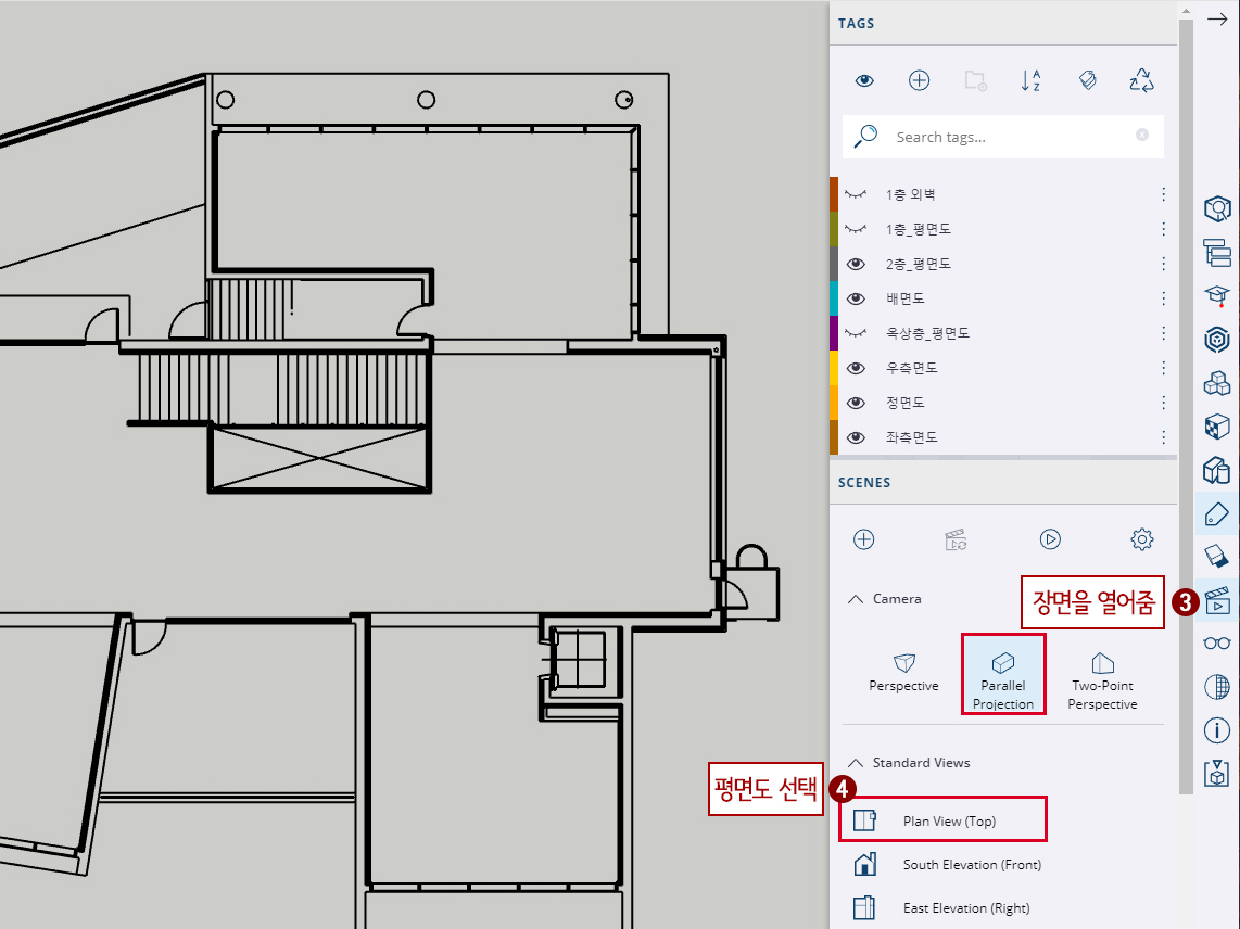 28. 화면을 줌 하고 2층_평면도 태그를 잠시 꺼줍니다.