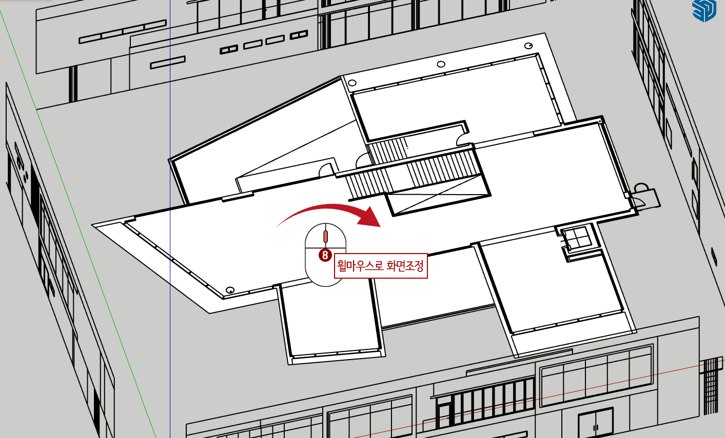 5. 휠 마우스로 화면을 그림처럼 조정합니다.