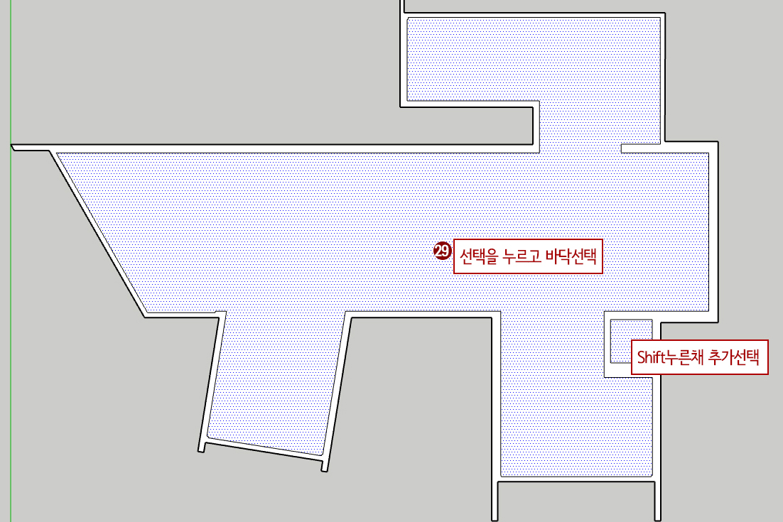 29. SpaceBar(선택)을 누르고 그림처럼 내부바닥 부분 두 군데를 Shift를 누른 채 선택해 줍니다.