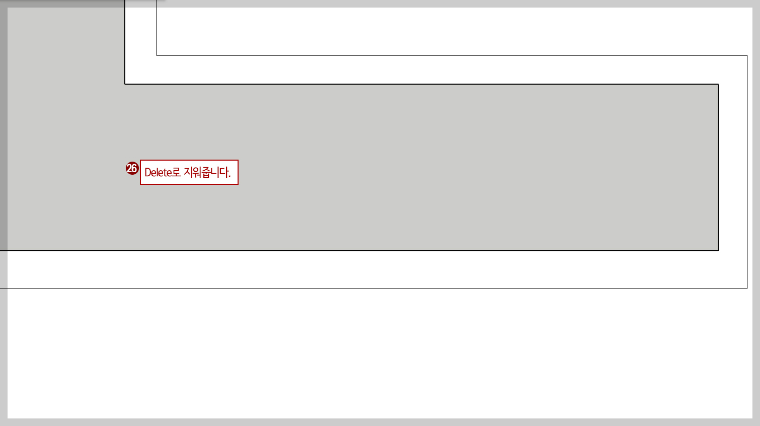 24. 옥상층 올라가는 계단실 아래는 그림처럼 일부 선이 내부선을 따라 그려야 하는 부분도 있습니다. 참조해 주세요.