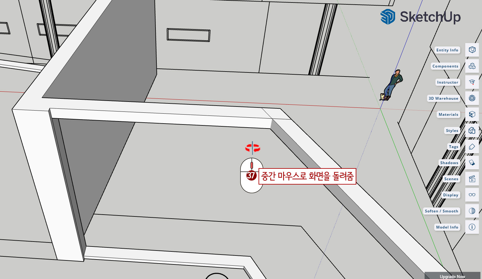37. 마우스 중간 버튼을 눌러 화면을 돌려줍니다.