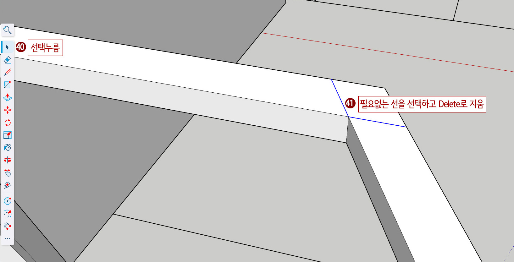 41. 그림처럼 필요 없는 겹치는 선을 선택합니다.