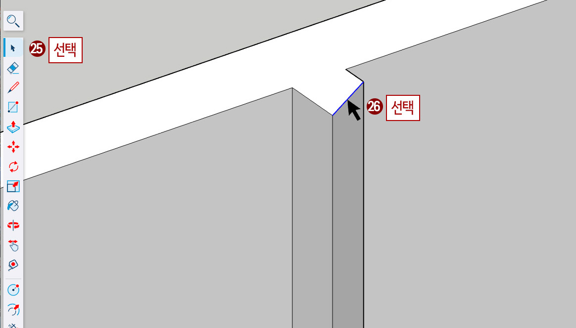 26. 그림처럼 위쪽 측면 윗 라인을 선택합니다.