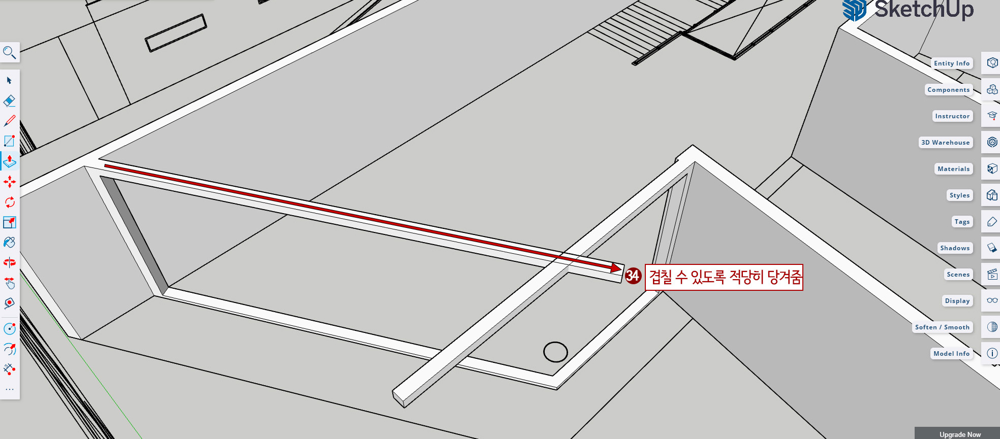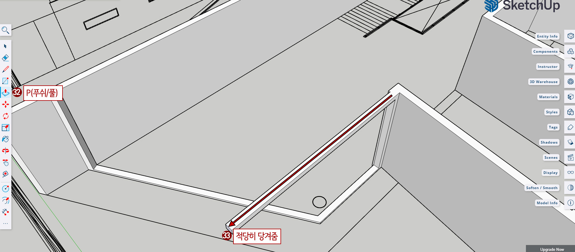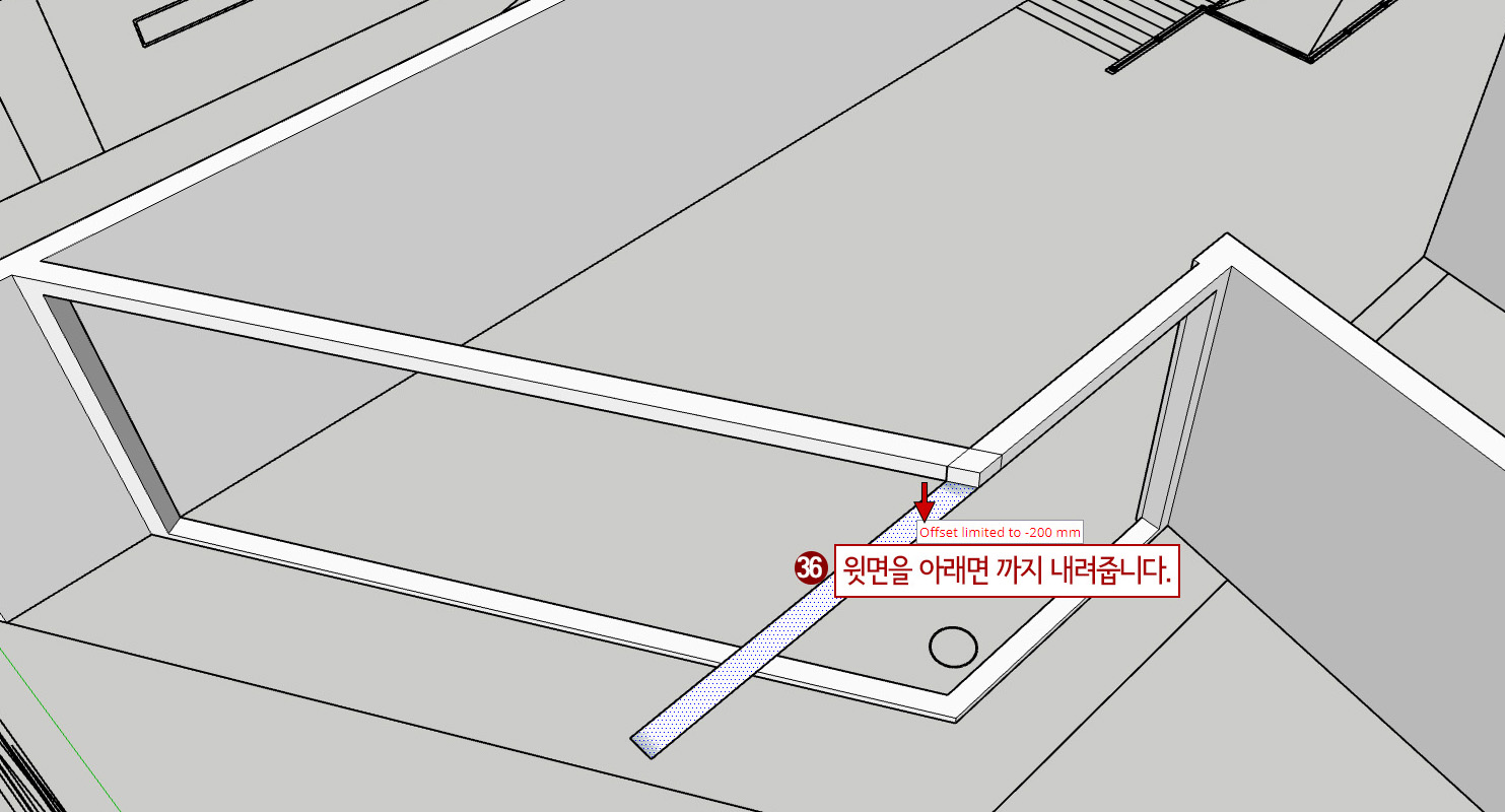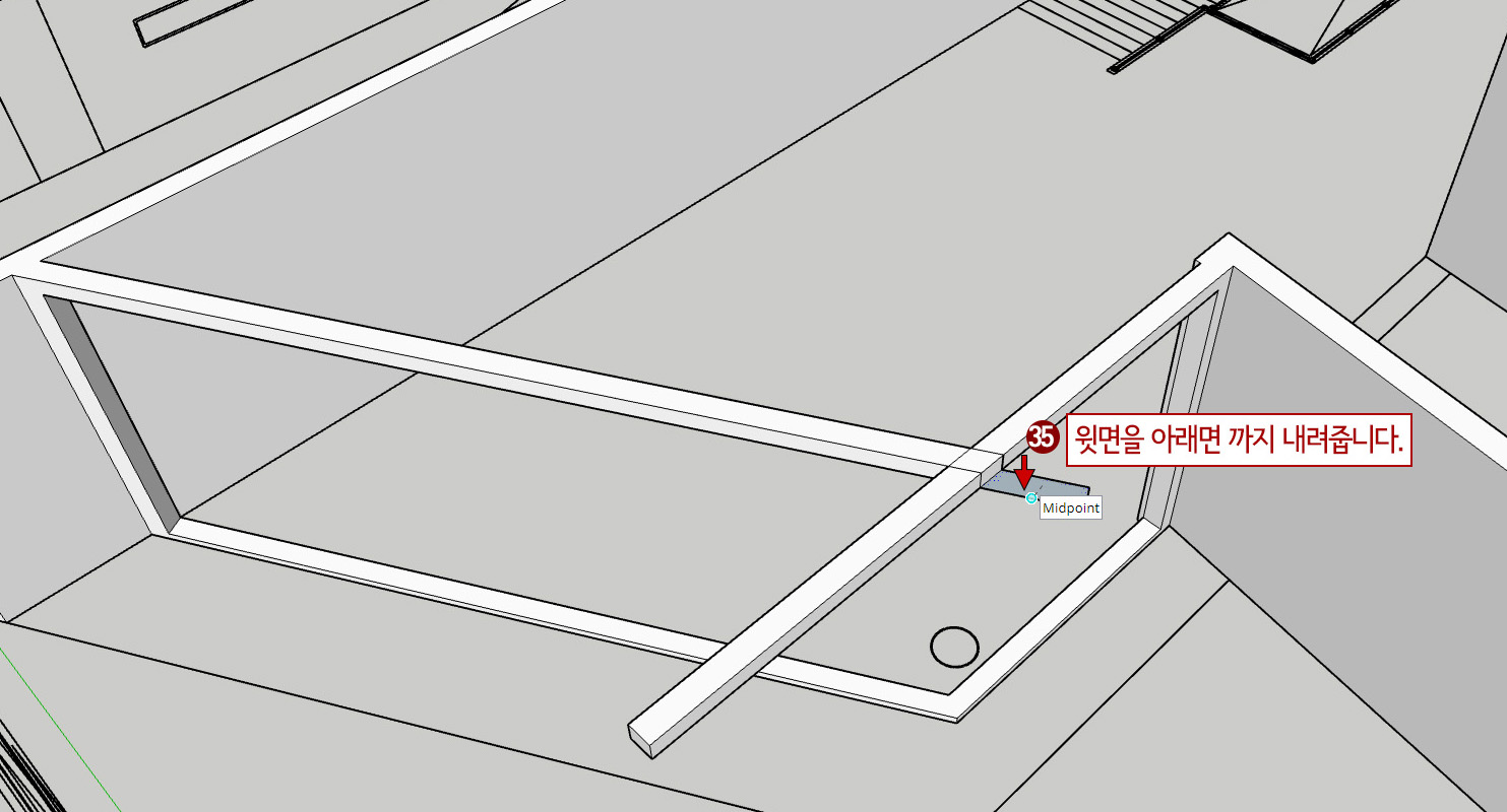 35. 튀어나온 윗면을 아래로 Push/ Pull 해줍니다.