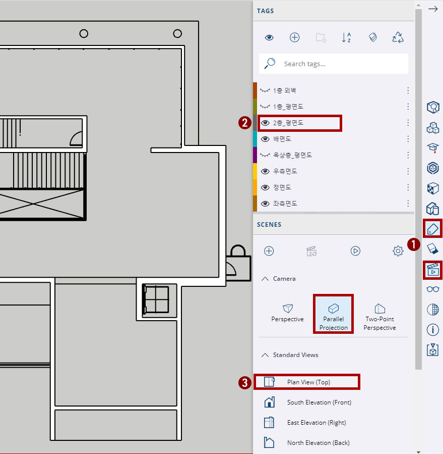 2. 태그에서 '2층_평면도'를 켜줍니다.