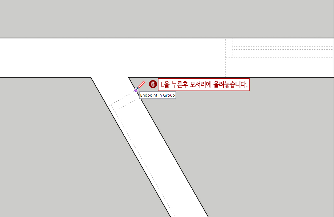 5. 화면을 확대하여 그림처럼 사선으로 이루어진 벽면을 잘 볼 수 있도록 해줍니다.