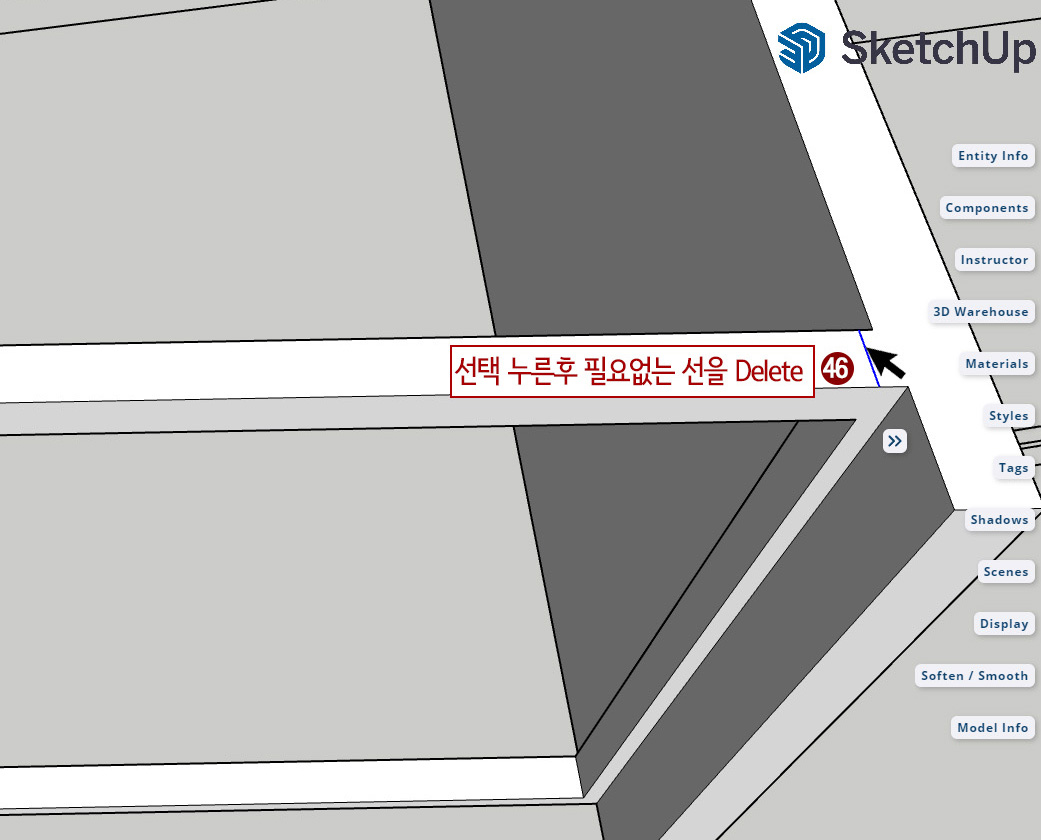 42. 필요없는 선을 선택한 후 Delete 해 줍니다.