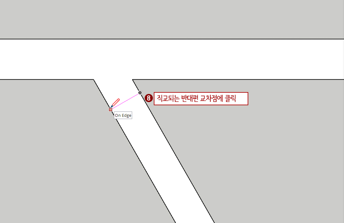 8. 직교되는 반대편 교차점에 마우스를 이동하면 모서리에 스냅이 잡히면 클릭하여 선을 그어줍니다.