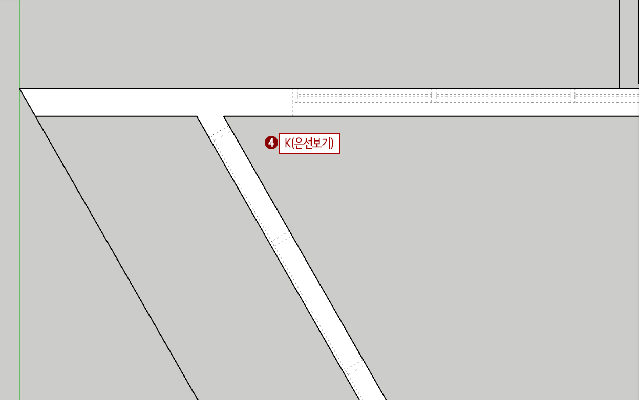 4. K(은선보기)를 눌러서 도면이 은선으로 보이도록 해줍니다.