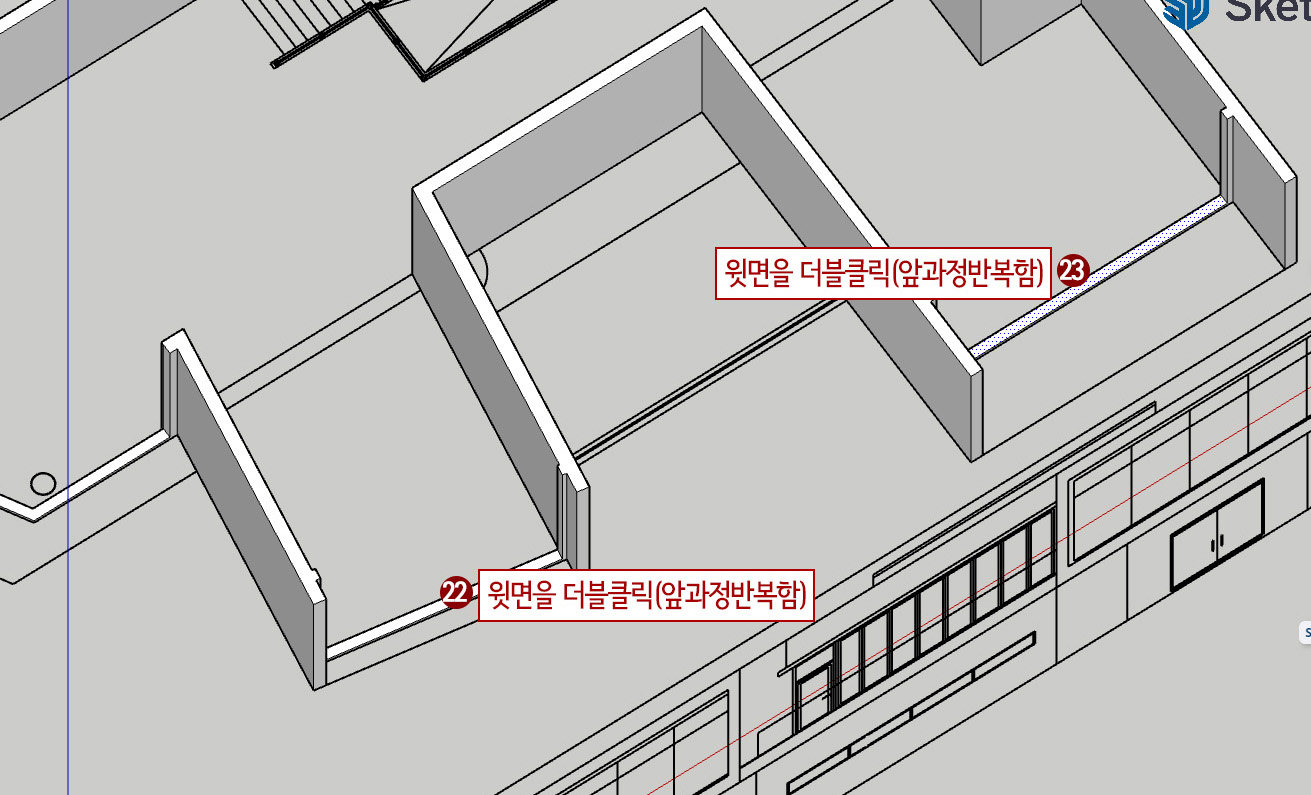 23. 3번째 벽면 윗면도 더블클릭합니다.