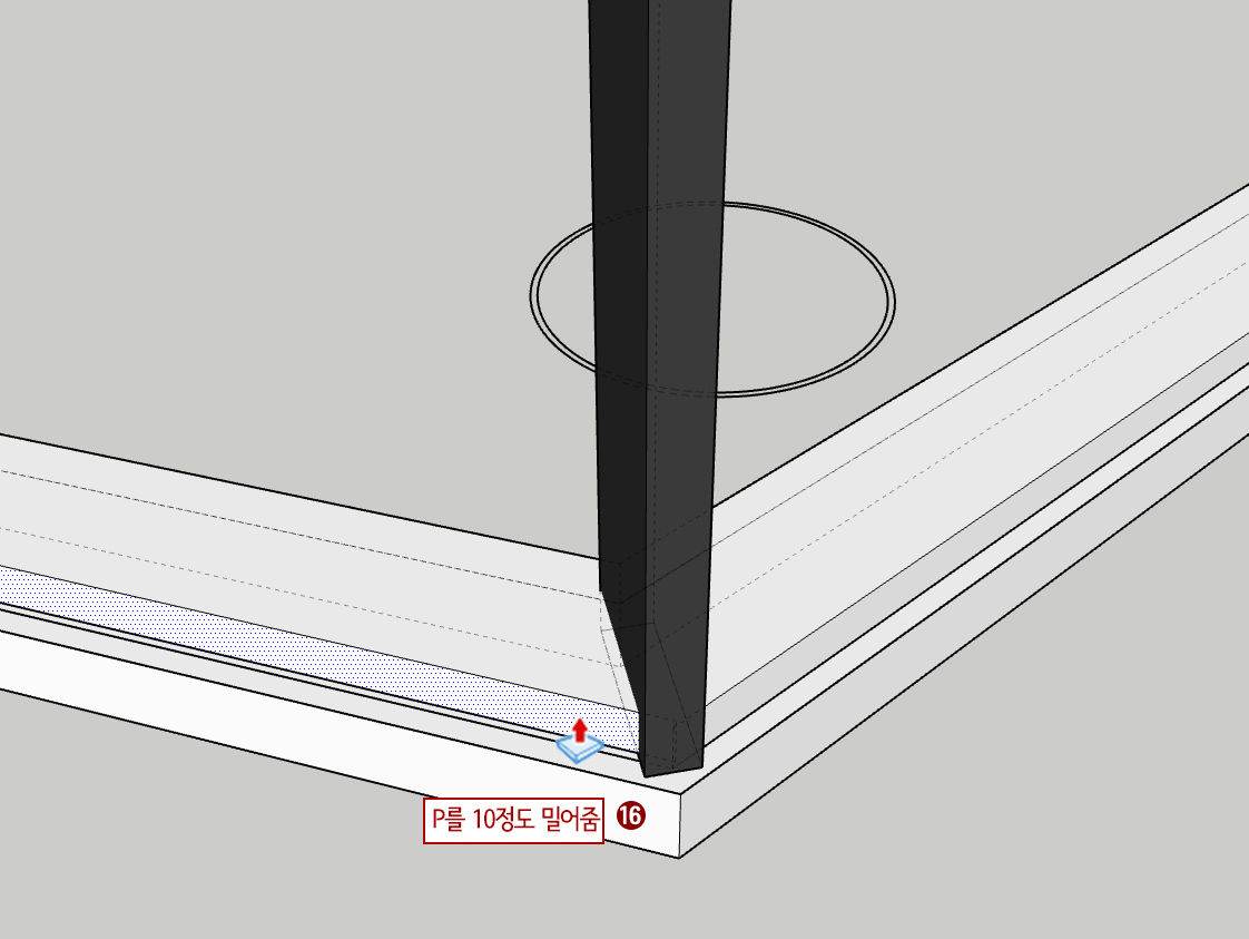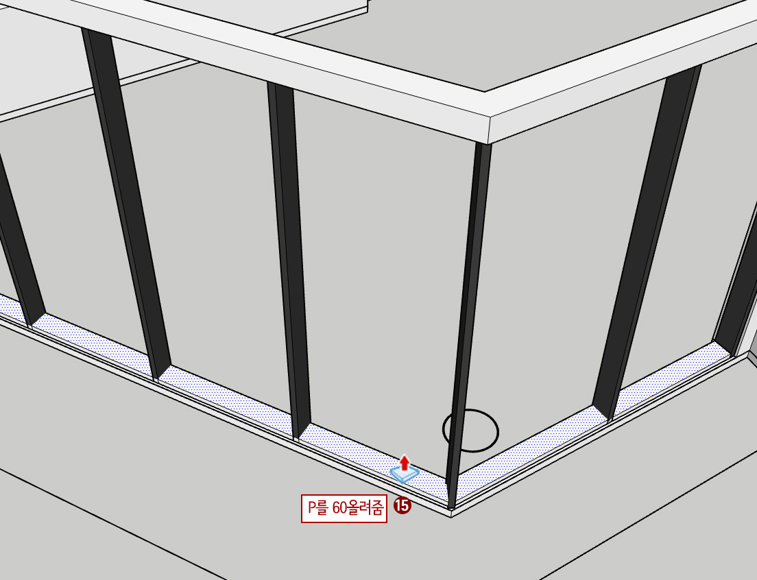 15. P(푸시 풀)을 누른 후 위로 60mm 올려줍니다.
