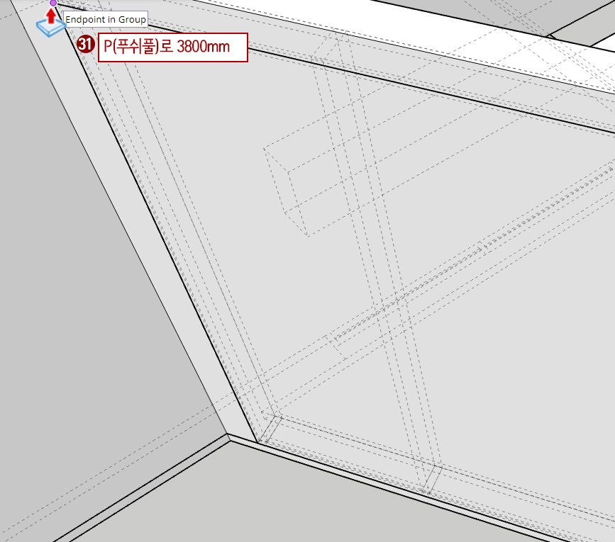 31. P(푸시풀)을 누른 후 위로 3800 당겨줍니다.