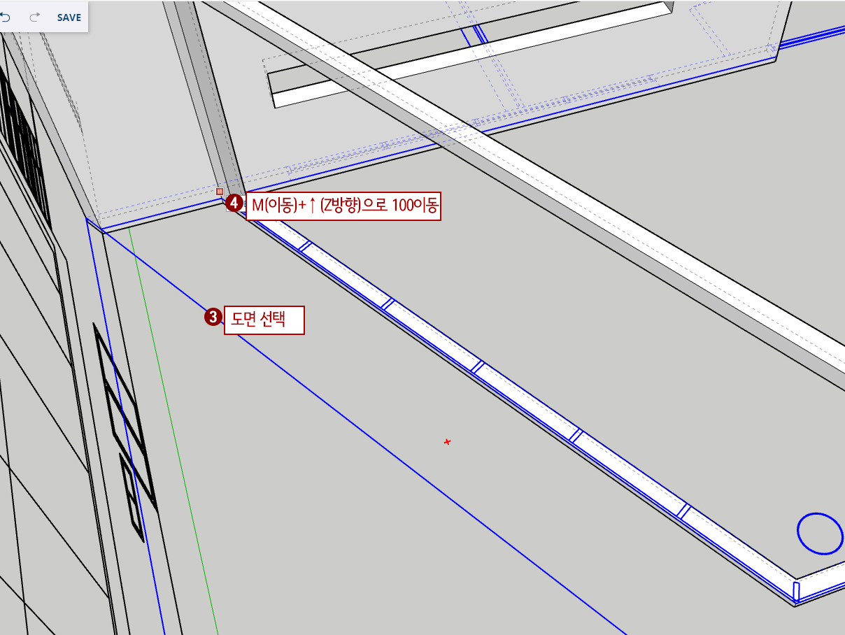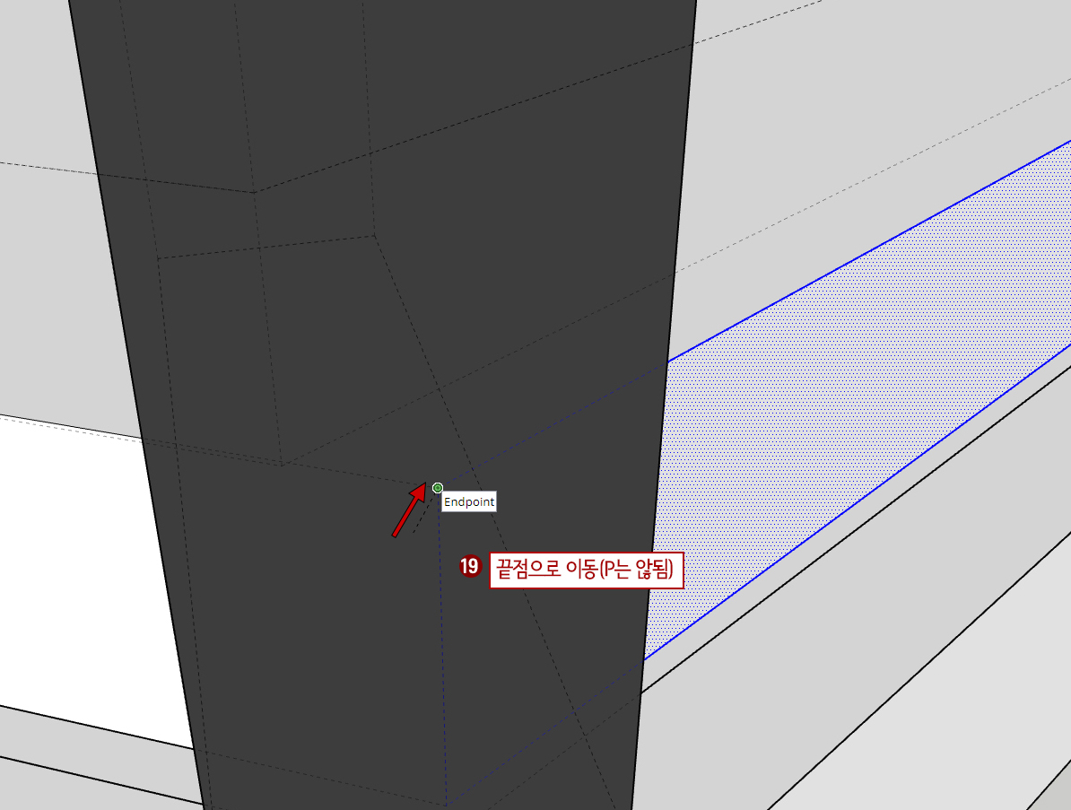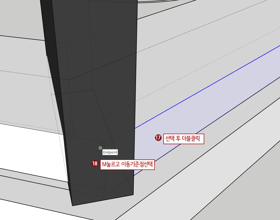 18. M(이동)을 누른 후 모서리 끝점에 이동 기준점으로 선택해 줍니다.
