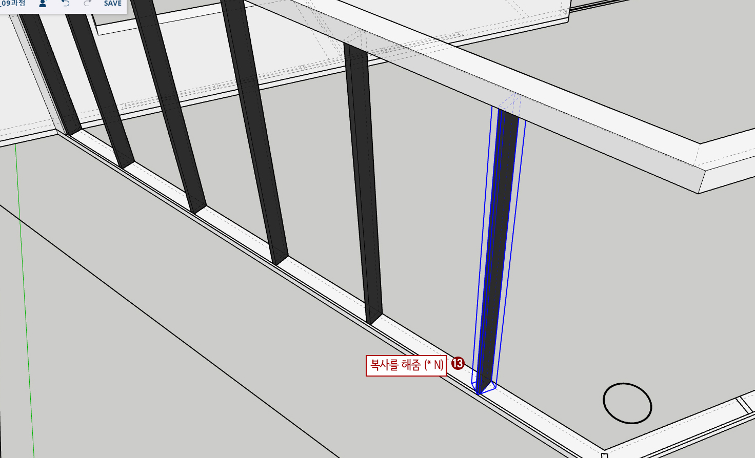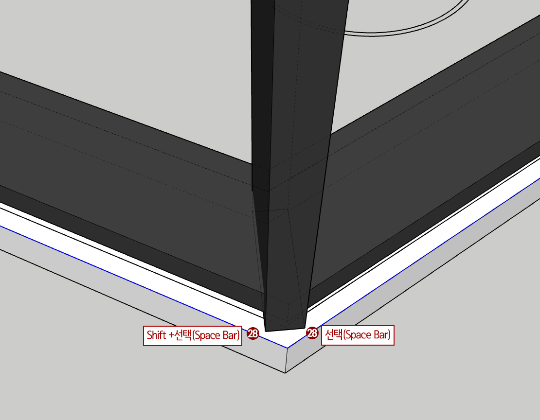 28. Space Bar를 누른 후 유리라인을 한 군데 선택하고 Shift를 누른 후 나머지 유리라인을 선택합니다.