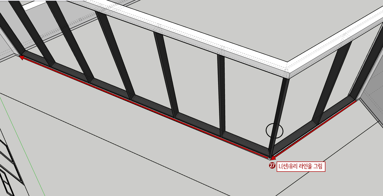 27. L(선)을 누른 후 유리라인을 그려줍니다.