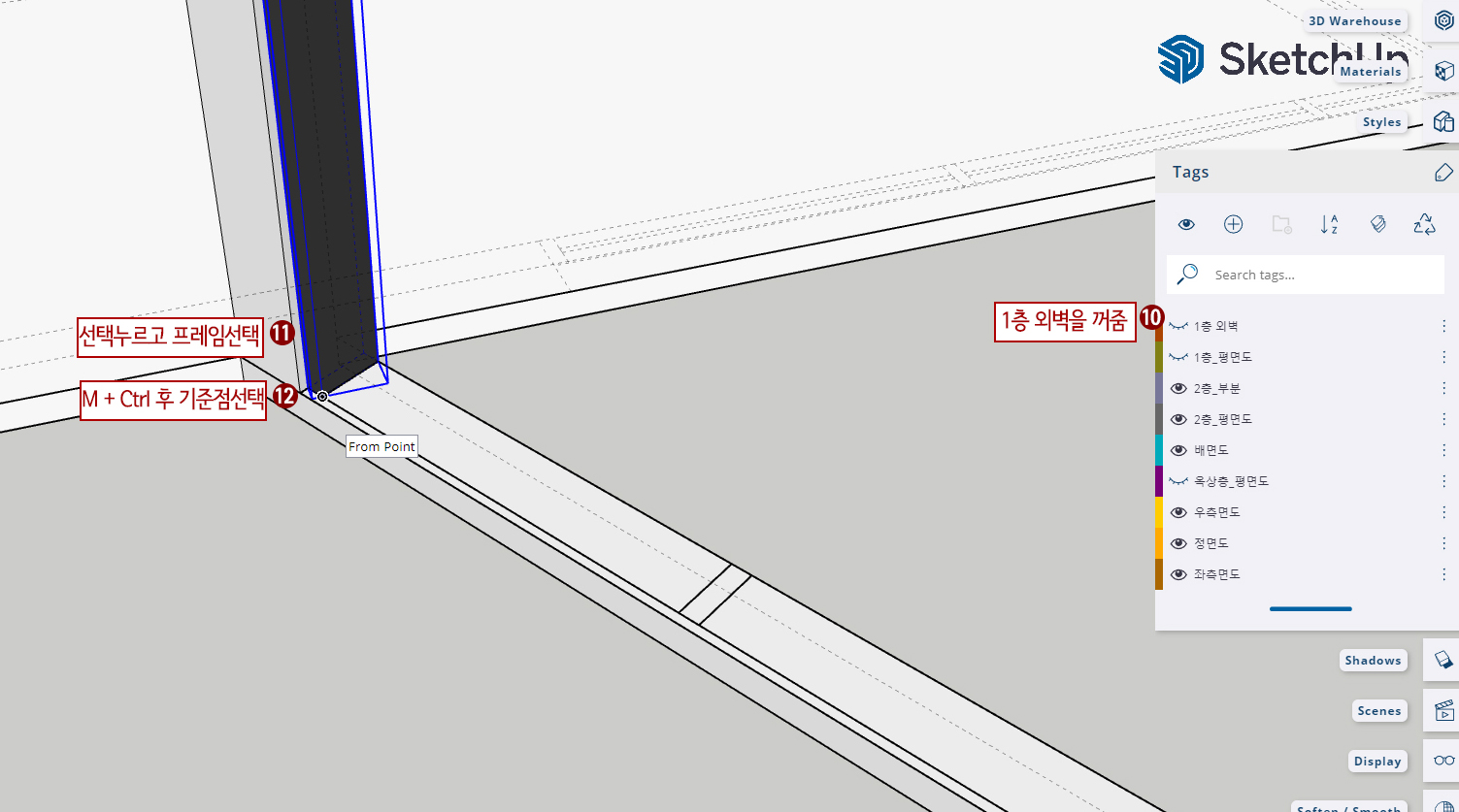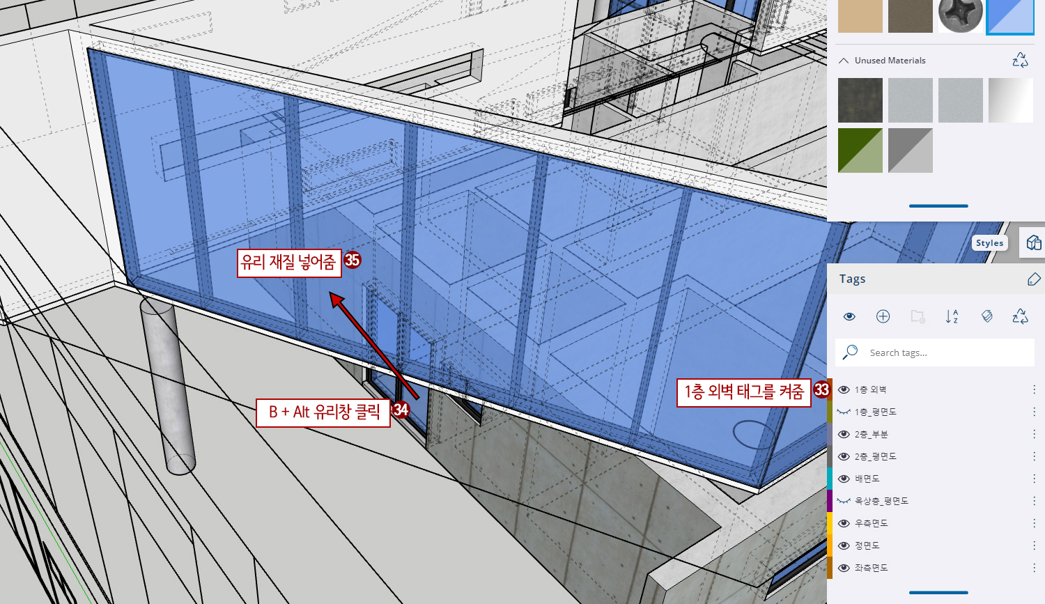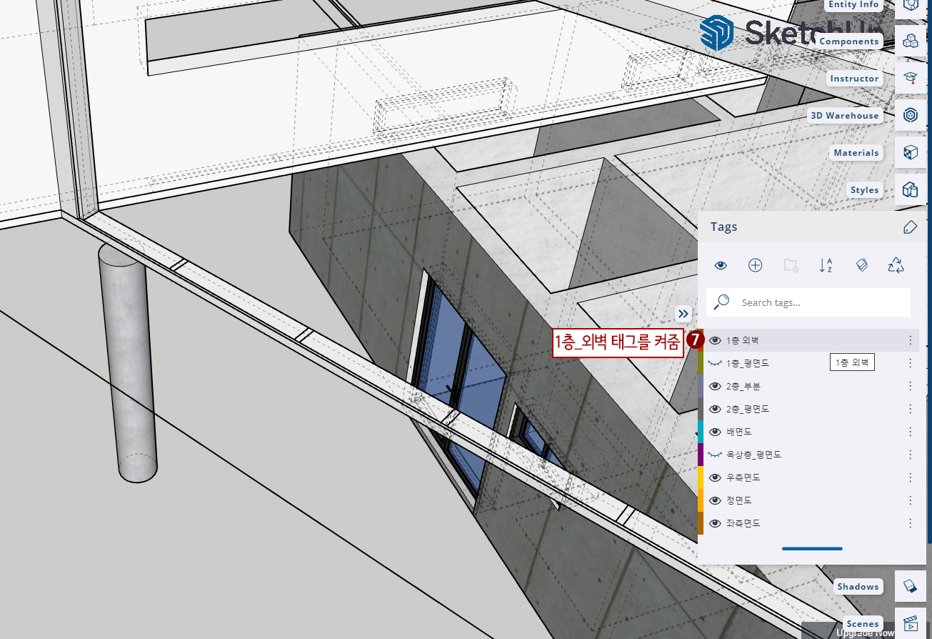 7. 태그에서 "1층_외벽" 태그를 켜줍니다.