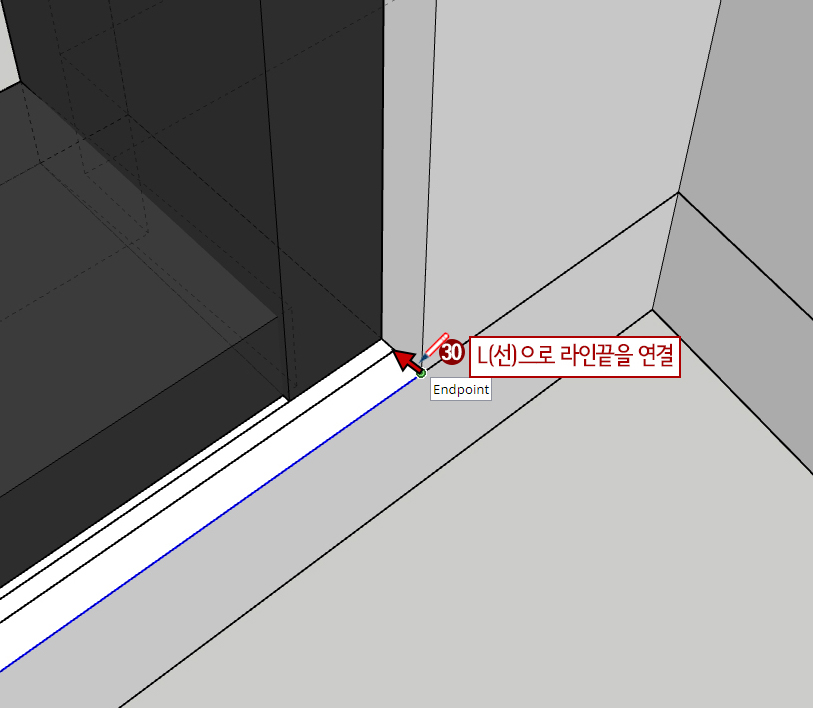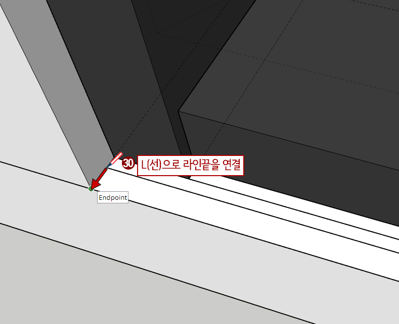 30. L(선)을 누른 후 양쪽을 선으로 연결시켜 줍니다.