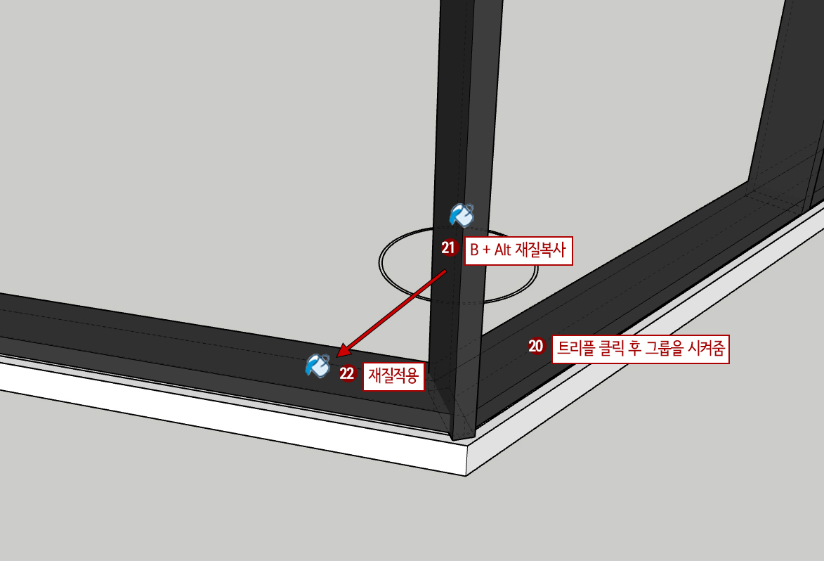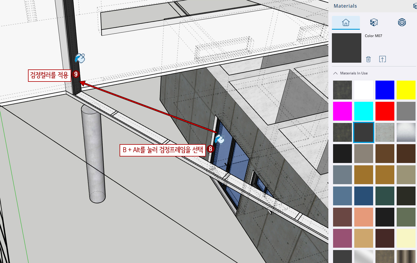 21. 재질을 넣기 위해 B(페인트) + Alt를 한 후 수직프레임의 검은색을 클릭합니다.