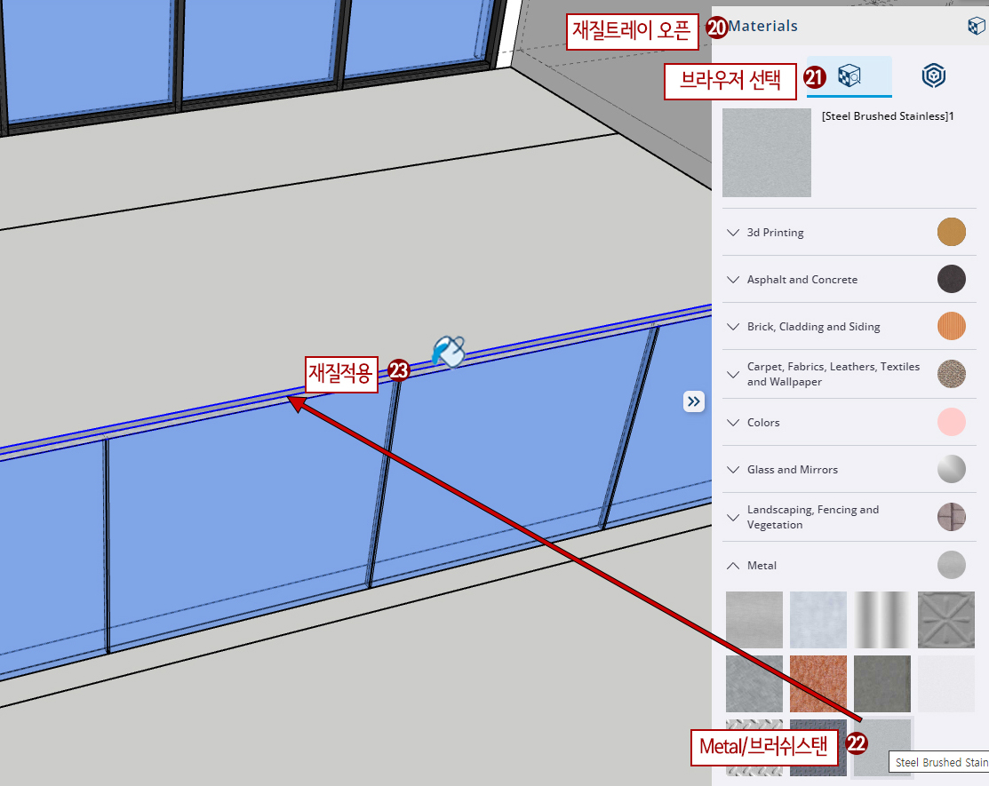22. Metal에서 적당한 메탈재질(Steel Brushed Stainless)을 선택합니다.