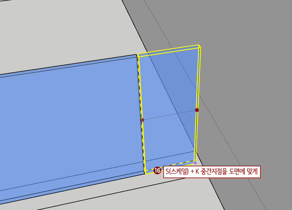 볼 수 있습니다. 스케일에 중간 핸들을 이용해서 폭을 줄여줍니다. 도면에 맞추면 됩니다.