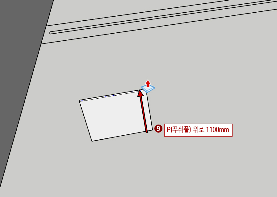 9. P(푸시 풀)을 누른 후 1,100mm 올려줍니다.