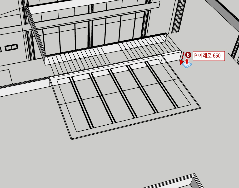16. P를 눌러 아래로 650mm 내려줍니다.