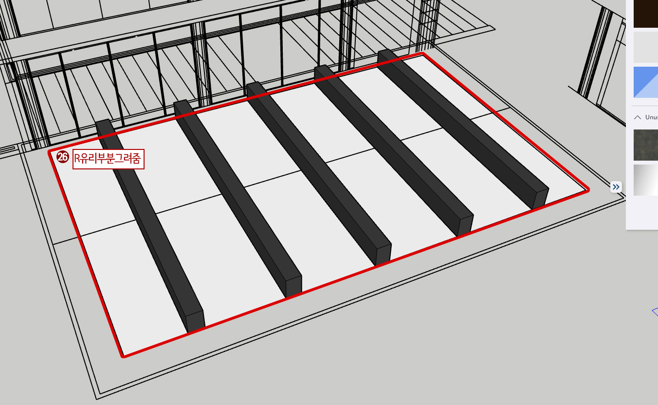 26. R(사각형)을 누른 후 유리 천창 부분을 그려줍니다.