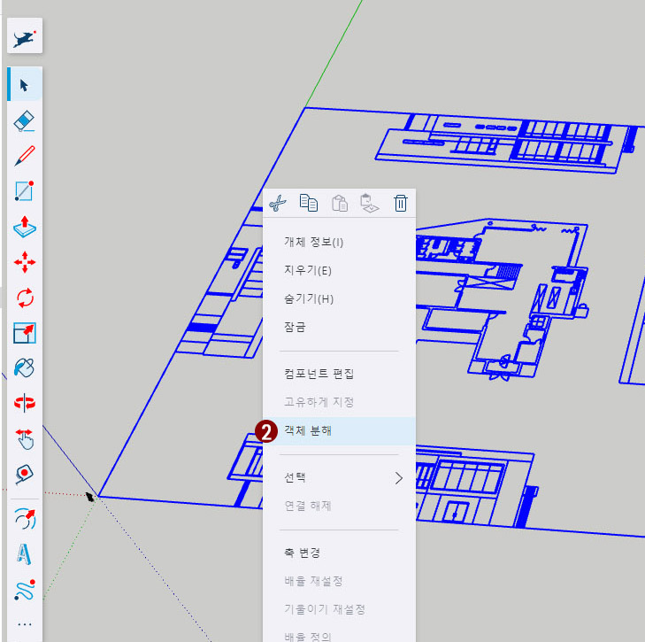 1. 1층 평면도에 해당하는 부분을 마우스 드래그로 선택하고 우클릭하여 메뉴에서 그룹 만들기(Make Group)를 해준다.