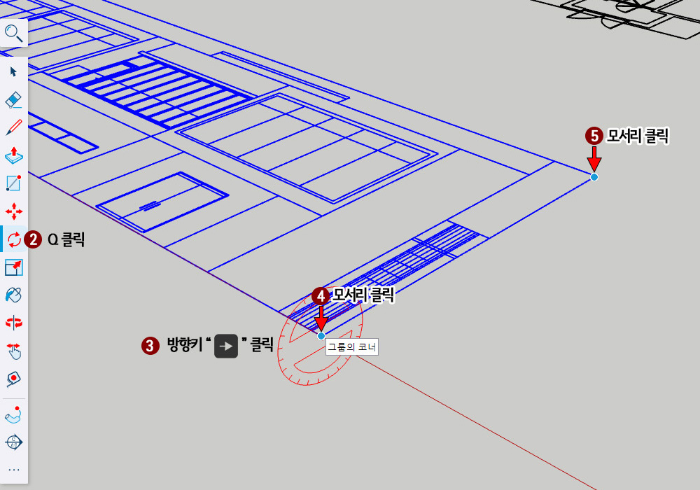 4. 도면 아래모서리를 클릭하고,