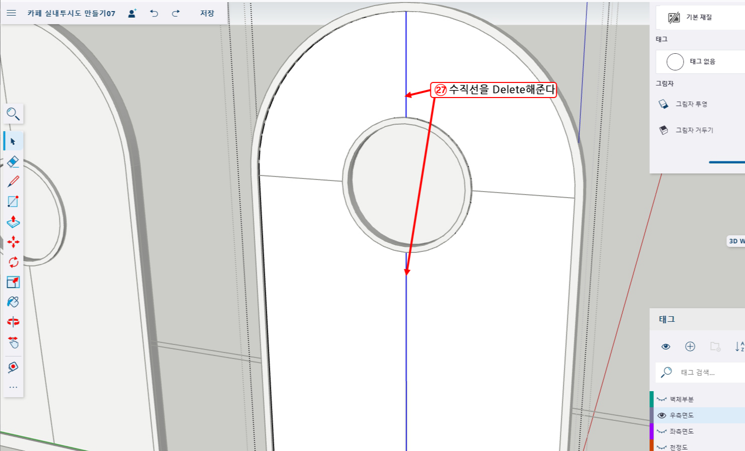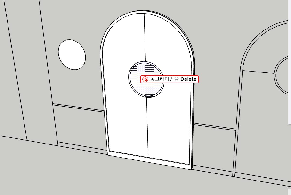 15. 다시 동그라미 면을 선택하고 지워준다.