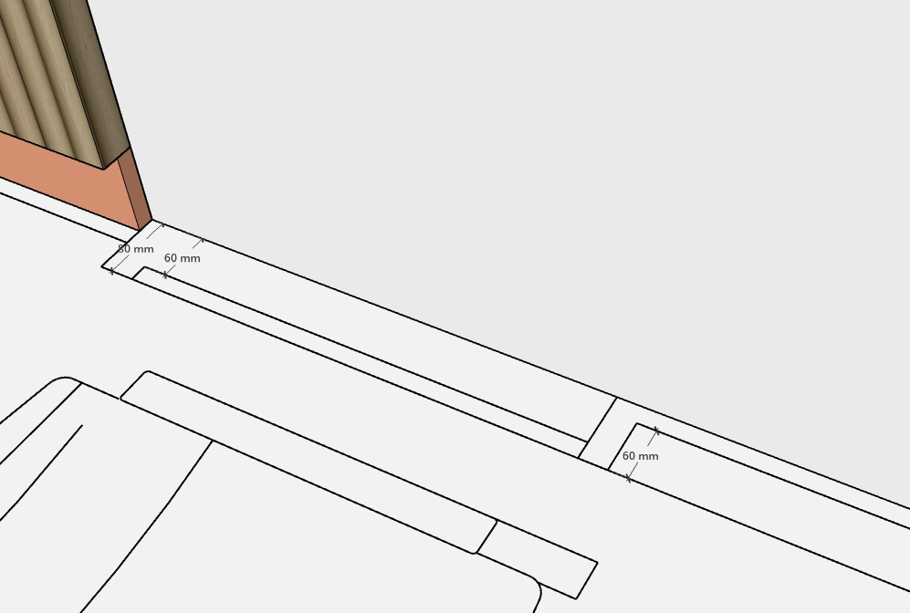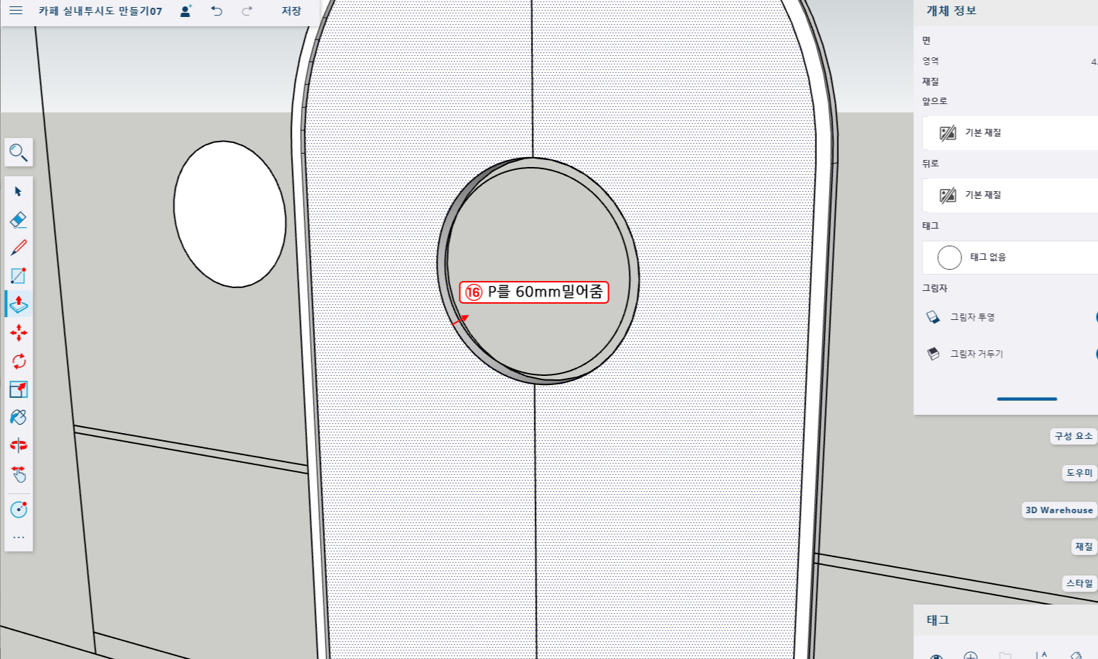 16. P를 누른 후 중간면을 뒤로 60mm 넣어준다.