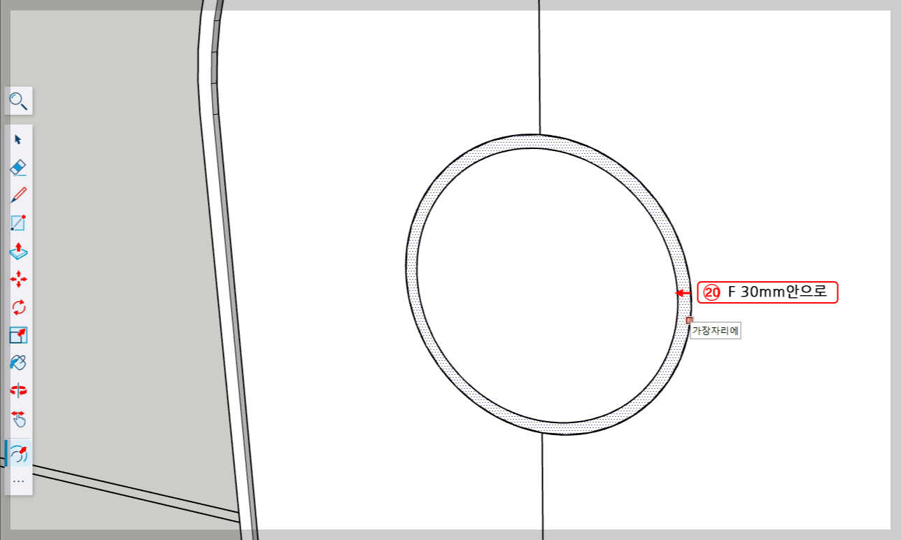20. F를 누른 후 동그라미를 30mm 안으로 넣어준다.